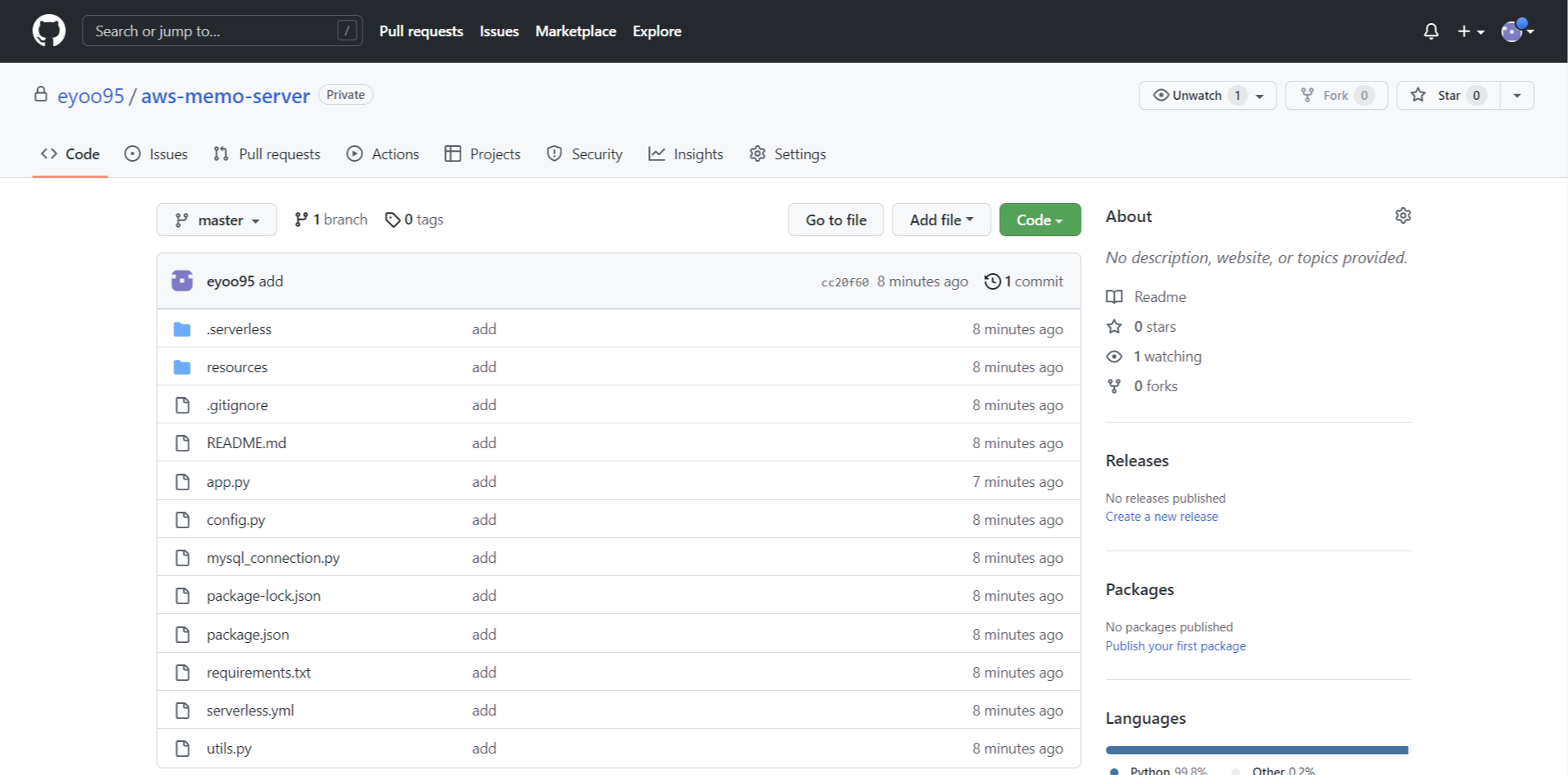 git remote add origin https://github.com/eyoo95/aws-memo-server.git # 깃주소