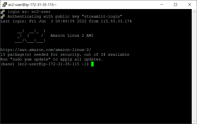 푸티를 통해 ec2에 접속한다.