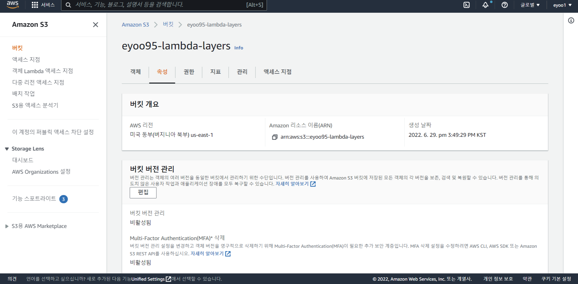 이제 AWS S3 페이지에서 이 zip 파일을 담을 버킷을 만든다.