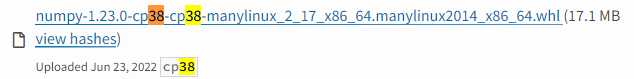 # 웹에서 '38'로 검색하여 3.8버전에 맞는 파일을 찾는다.