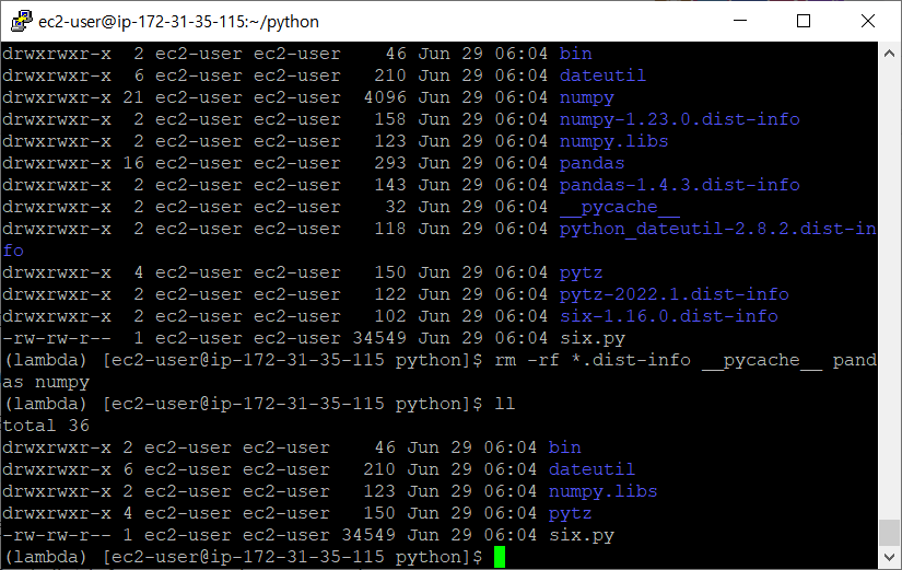 # 아마존 리눅스의 판다스와 넘파이 라이브러리를 사용하기 위해 삭제한다.