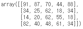 randint 함수를 이용해 시작과 끝을 주는 정수로 채워진 배열을 만들자.