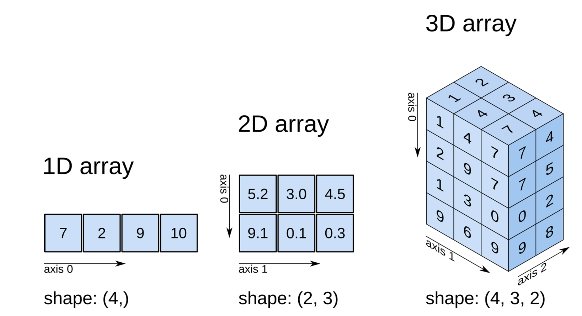 # 1차원 배열은 축이 하나(x , ), 2차원은 둘 (x , y), 3차원은 셋이다 (x , y , z ).