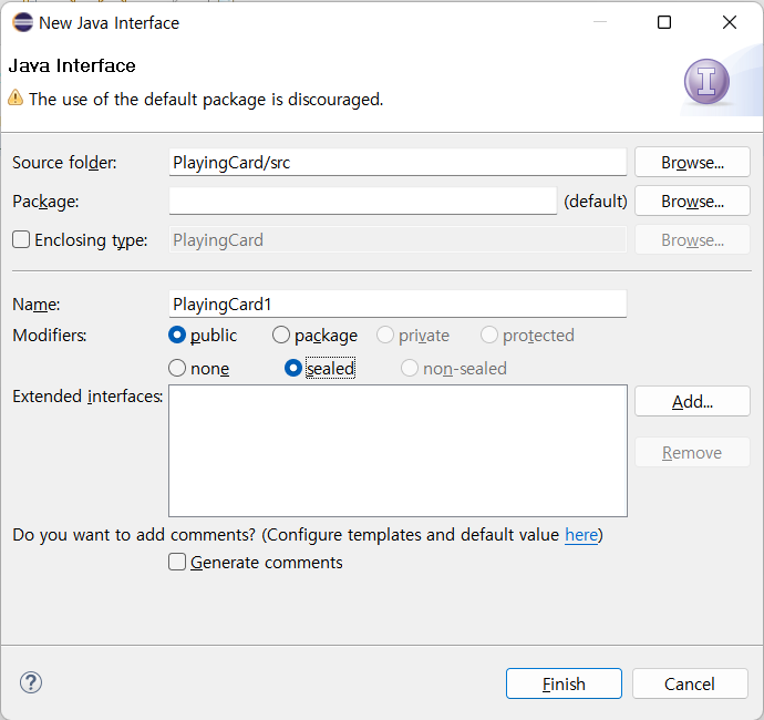 Finish를 눌러 인터페이스를 만들고 상수와 함수들을 만든다.