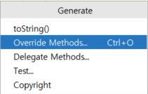 # 알트 + 인서트 버튼을 눌러 오버라이드를 선택한다.