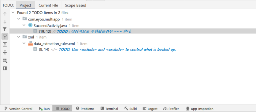 해당 TODO를 누르면 해당 코드로 갈수있다.
