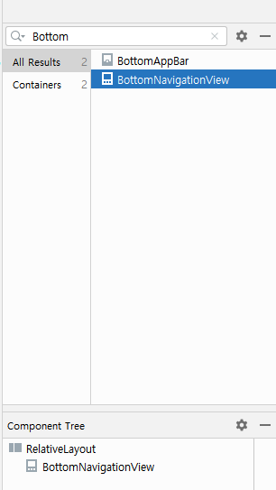 디자인에서 BottomNavigationView를 골라 넣는다.