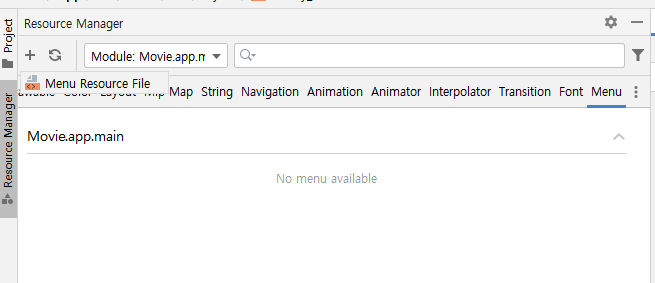 # 메뉴도 Resource Manager를 통해 만들수 있다.