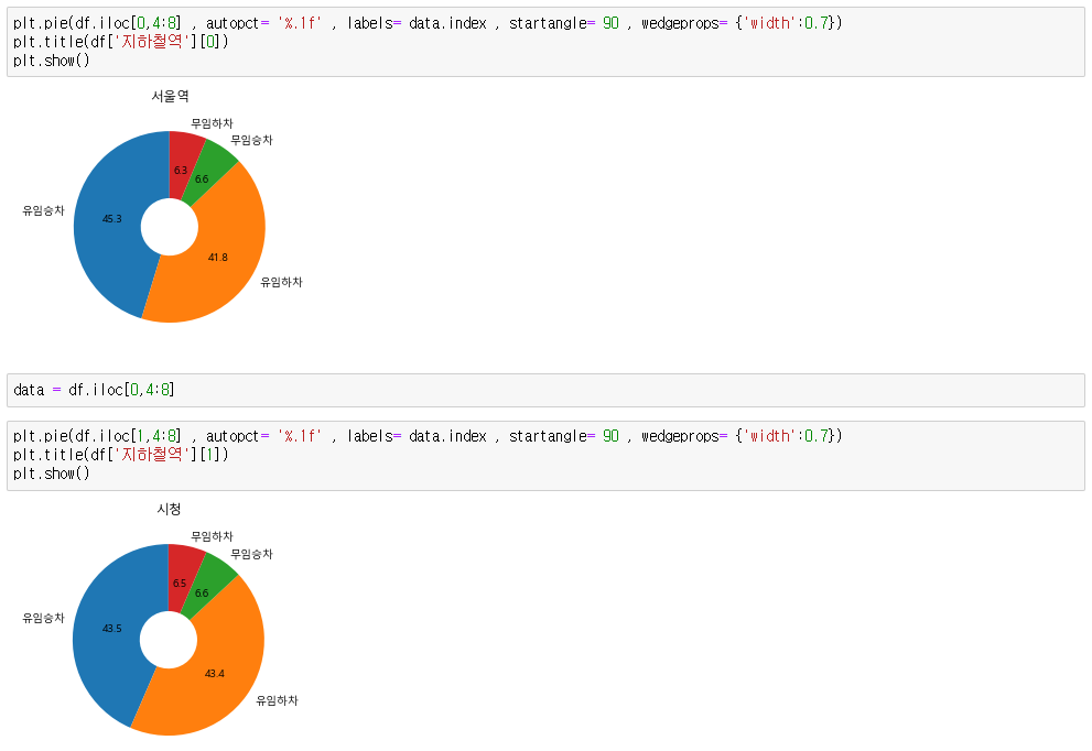 for문을 이용하여 모든 지하철역의 데이터를 파이차트로 나타낼수 있다.