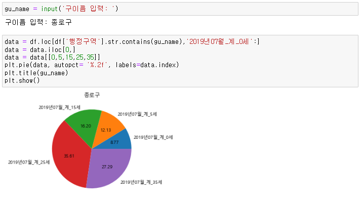 # input함수를 이용해 종로구 뿐 아니라 다른 구의 인구 데이터도 보여줄수 있도록 한다.
