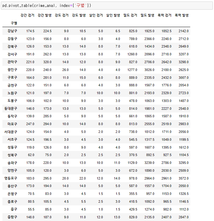 서울시 구별 범죄 발생과 검거율 데이터 분석