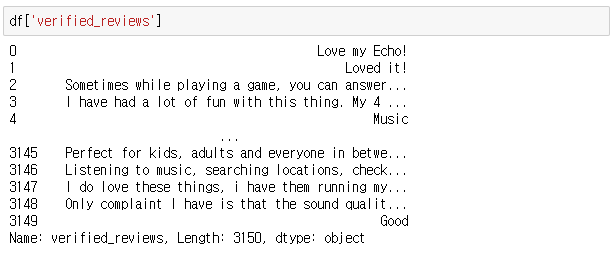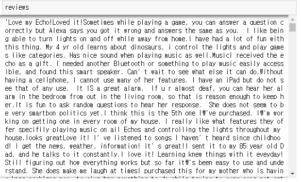 실습 1-1. verified_reviews 를 하나의 리스트로 만듭니다.