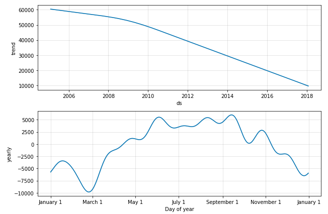 365일 주기로 make_future_dataframe을 설정한다음 프로펫을 실행한다.