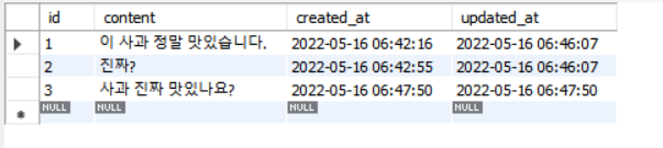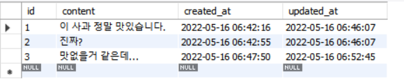 #아직 업데이트를 하지 않아서 created_at 과 updated_at 의 날짜가 같다
