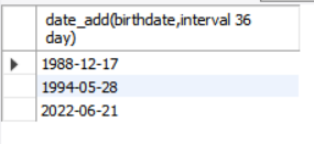 date_add함수로 birthdate의 36일 후 날짜를 나타내자.