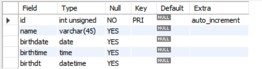 MySQL에서 테이블의 타입을 date, time, datetime으로 설정하고