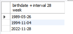 select birthdate + interval 28 week