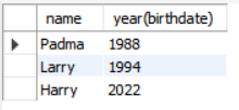 select name, year(birthdate)