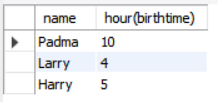 select name, hour(birthtime)