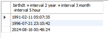 select birthdt + interval 2 year + interval 3 month -interval 5 hour