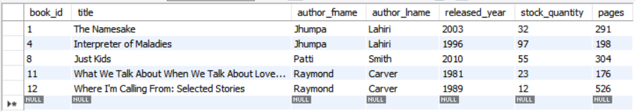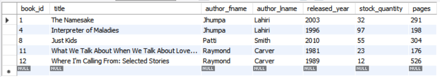 where author_lname in('Carver','Lahiri','Smith');
