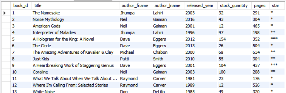 stock_quantity 가 0~50 사이면 , * (별표한개), stock_quantity 가 51~100 사이면 ** (별표두개), 그 외는 *** (별표한개)