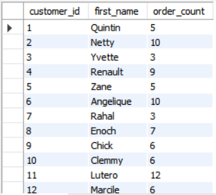 select c.id as customer_id, c.first_name,count(*) as order_count