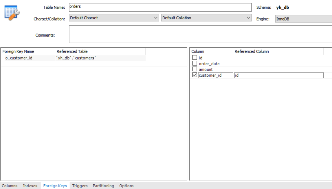 # 해당 테이블의 열결되는 컬럼을 정하고 연결할 테이블의 컬럼을 정한다.