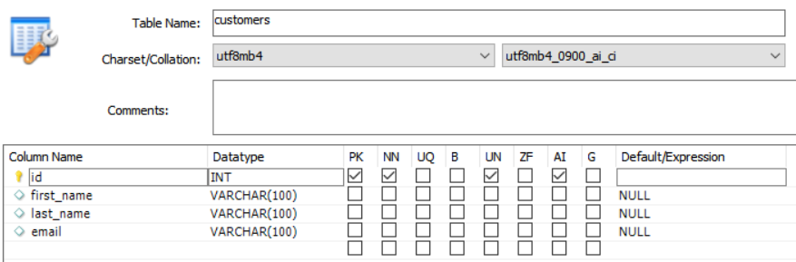 먼저 고객 테이블을 생성하자