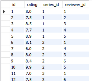 # 시리즈 테이블에 리뷰 테이블이 left join으로 연결되었다.