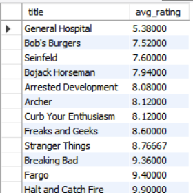 리뷰를 하지않은 티비쇼의 타이틀을 나타내자