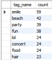 실습 5. 가장 많이 사용된 해시태그의 tag_name을 나타내고 해시태그가 몇개인지 조회하세요.