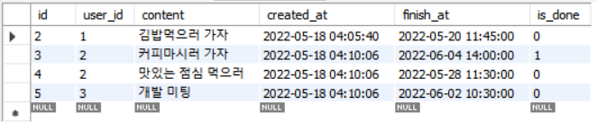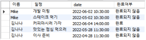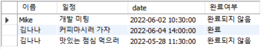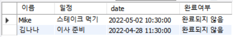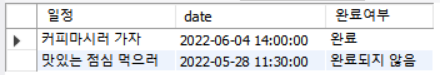 select content as 일정, finish_at as date, if (is_done=0,'완료되지 않음','완료') as 완료여부