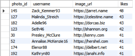 실습 4. 가장 유명한 사진은 무엇인지 찾아서, 그 사진의 유저이름, image_url, 좋아요 수를 나타내세요.