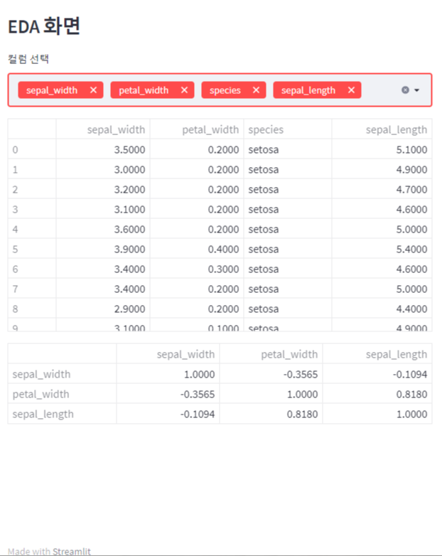 EDA 화면을 위한 코드를 작성한다.