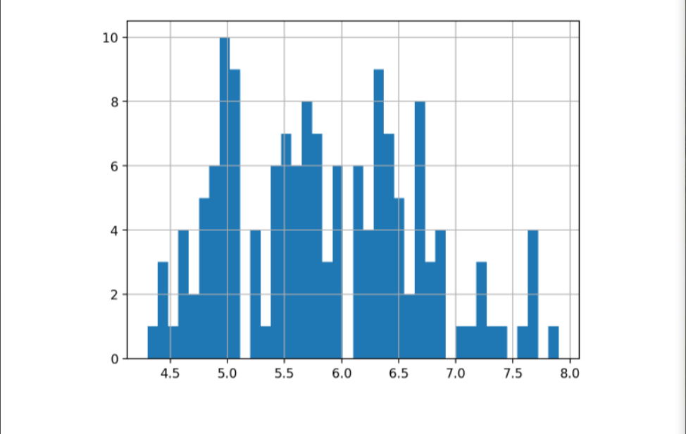 sepal_length 컬럼을 히스토그램으로 나타내자.