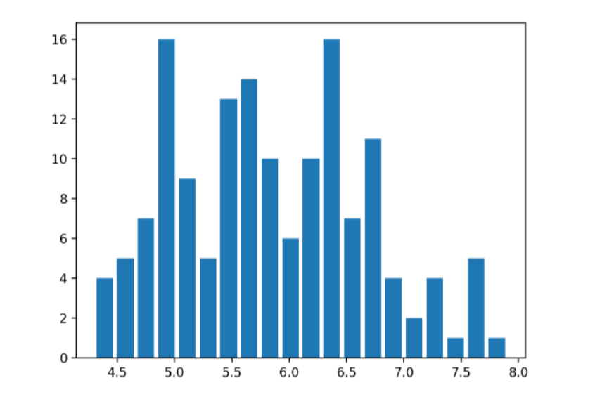 히스토그램을 만들고 bin의 개수는 20개로 설정한다.
