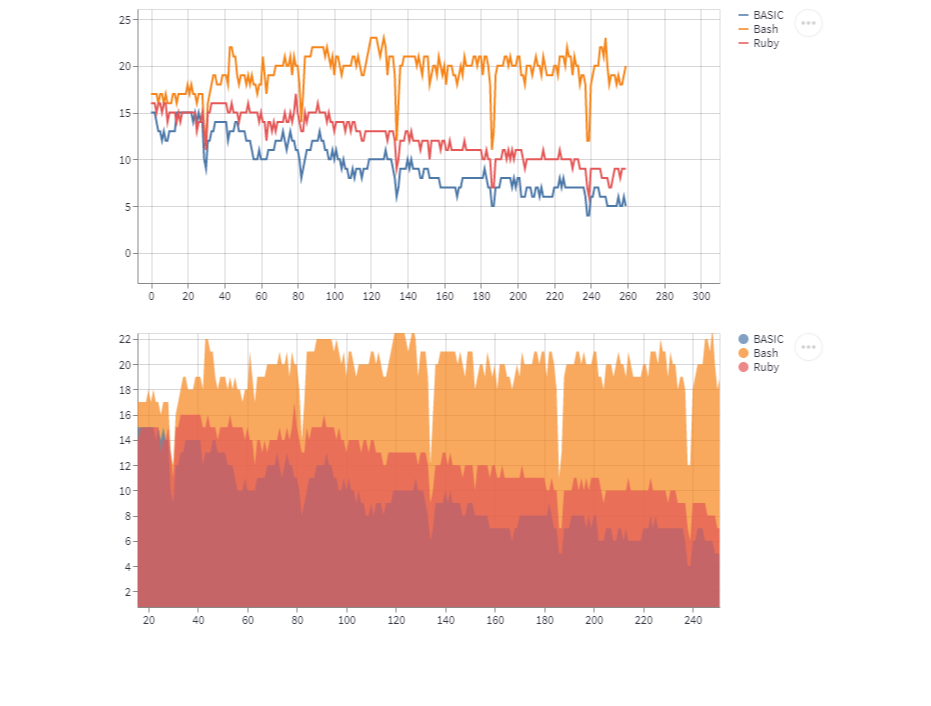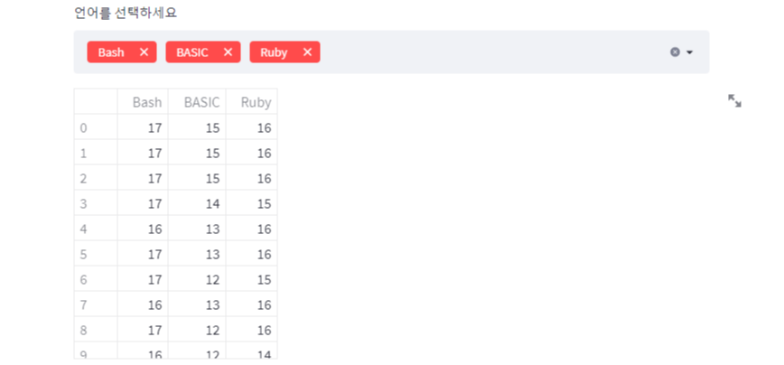 스트림릿에서 제공해주는 line_chart와 area_chart를 사용해서 언어의 사용 빈도수를 표현해보자