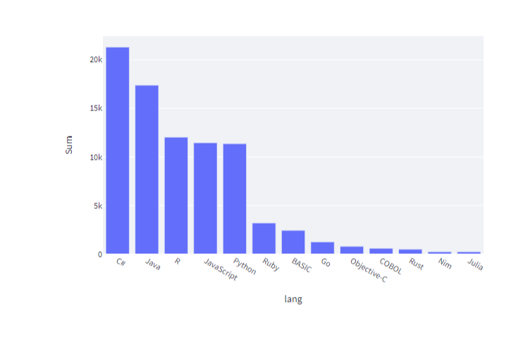 fig2 = px.bar(df4_sorted,x='lang',y='Sum')