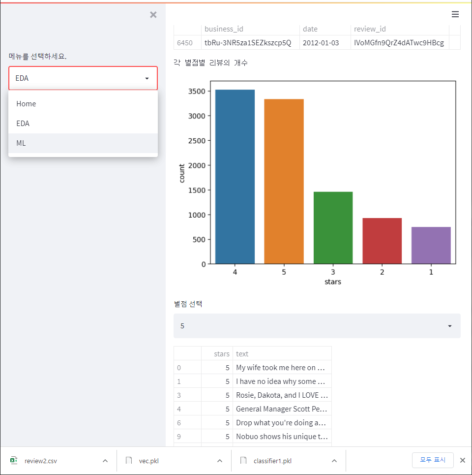 home, eda, ml로 구성된 스트림릿을 만들었다.