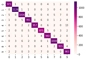 sb.heatmap(cm,annot= True, fmt= '.0f' ,cmap='RdPu')