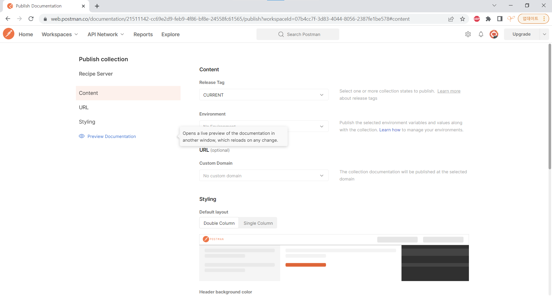 왼쪽의 Preview Documentation을 누른다.