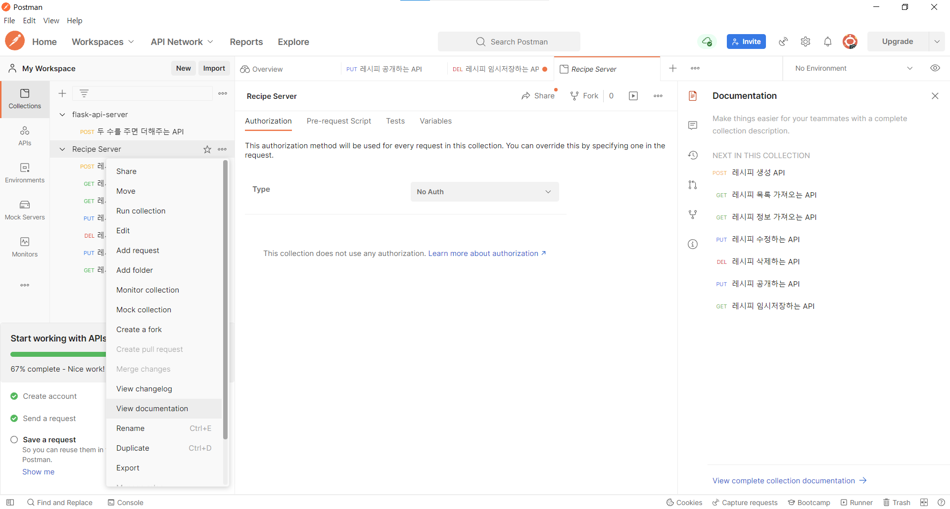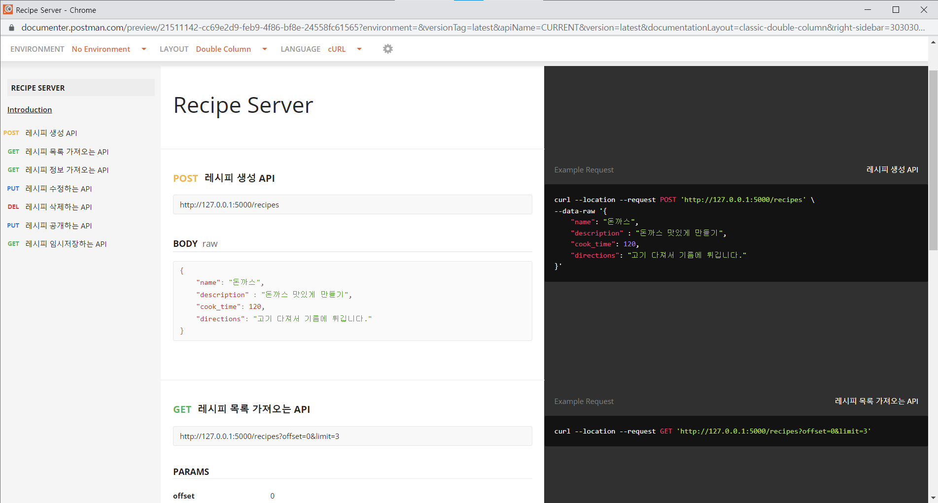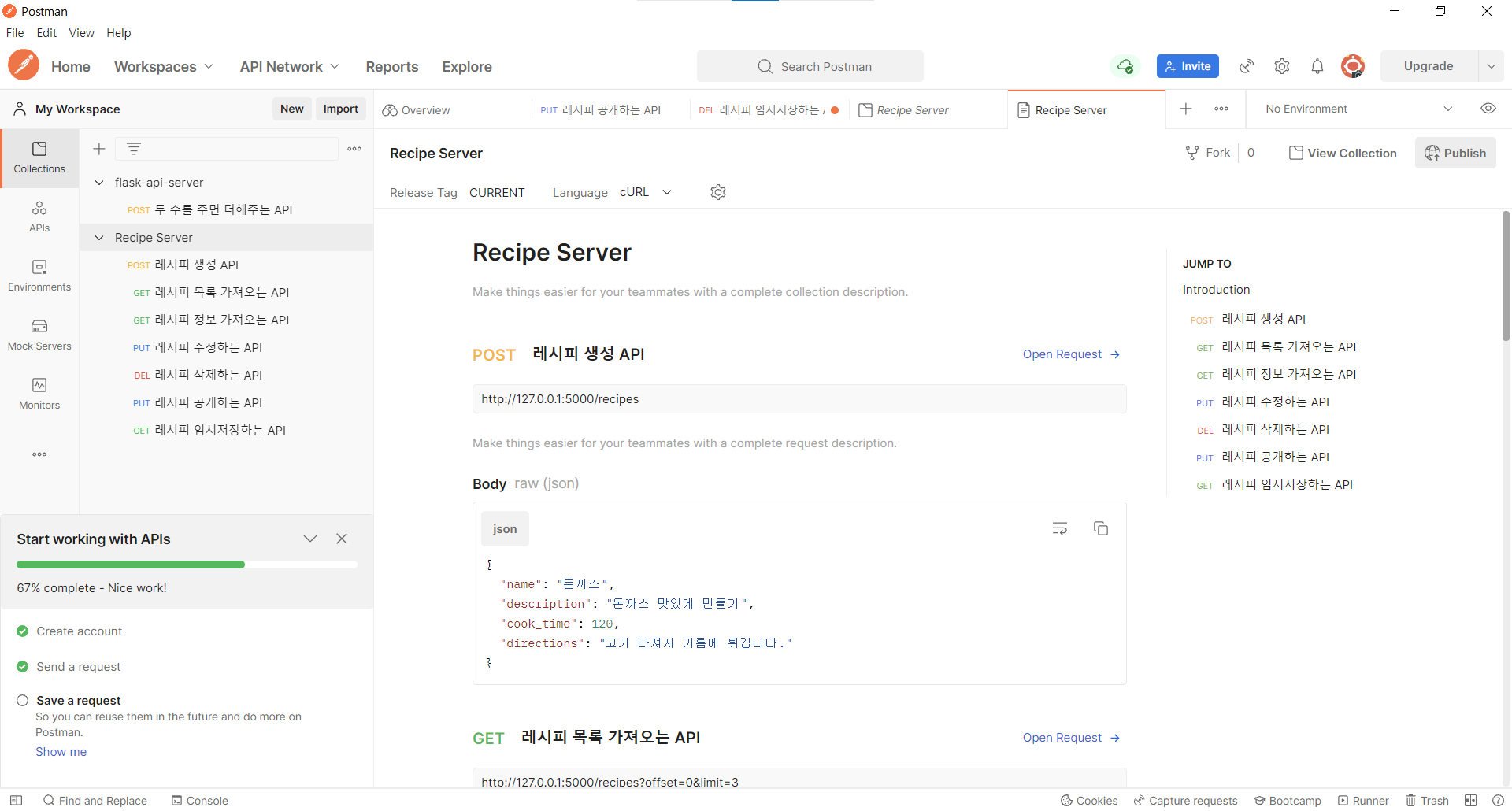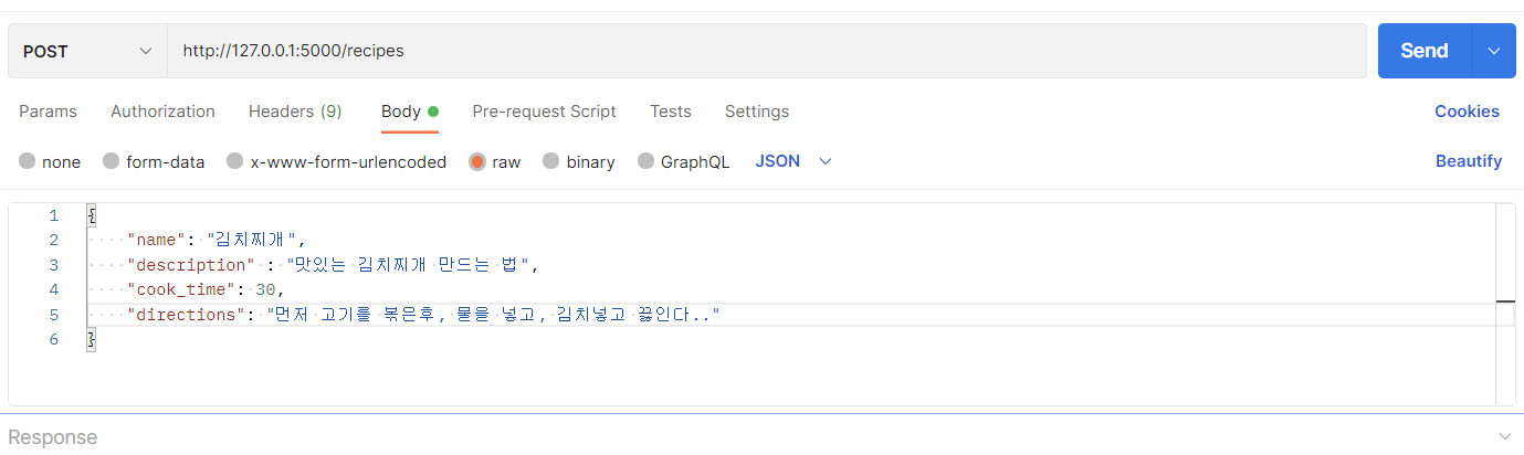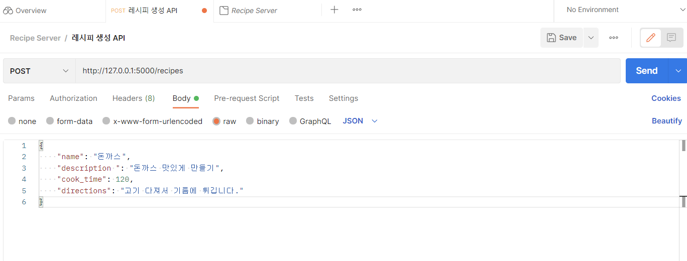 이제 레시피를 작성하는 API를 만든다.