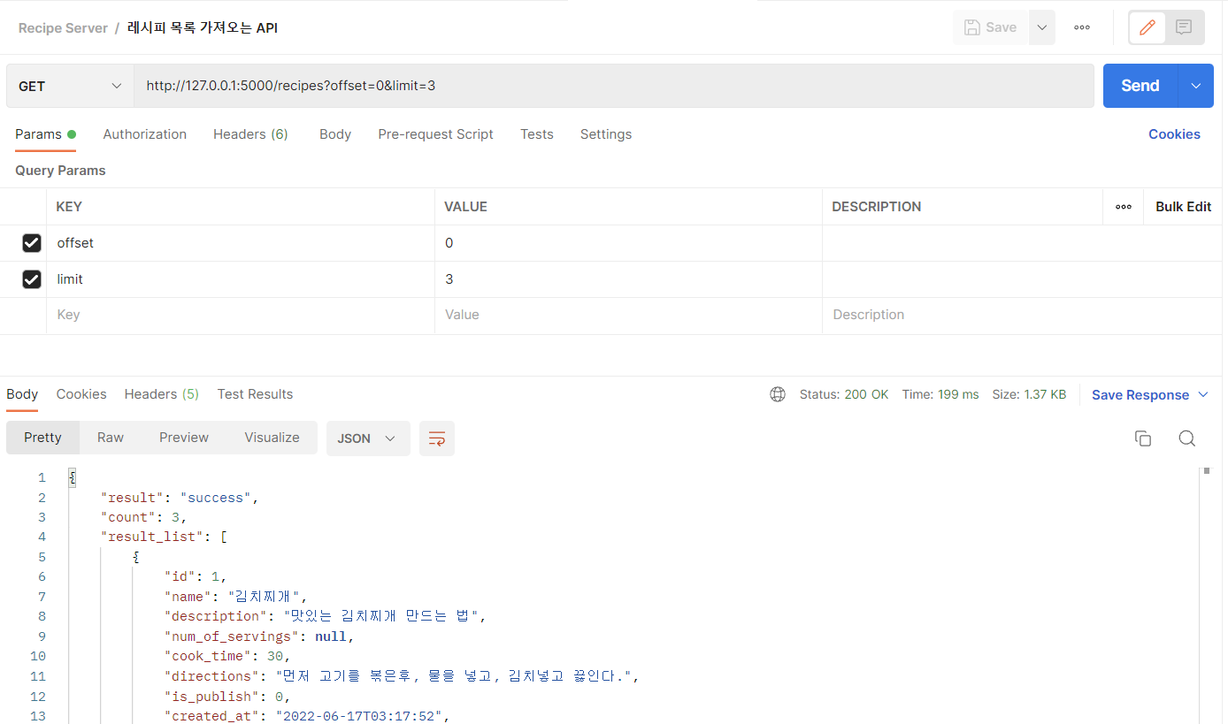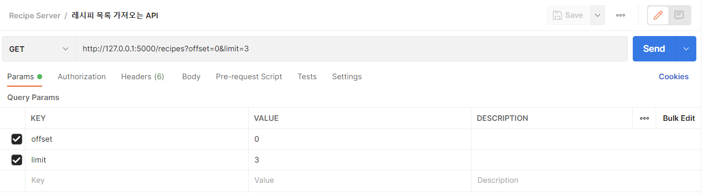 이제 get 메소드를 사용해서 레시피 가져오는 API 를 만든다.