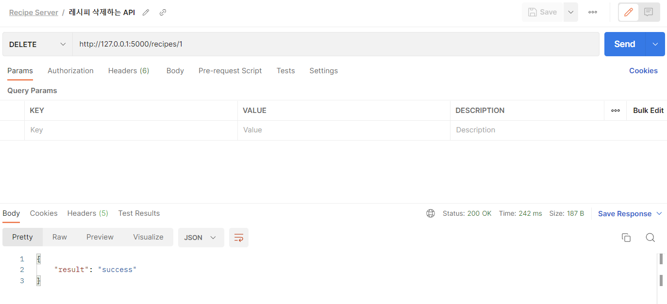 delete메소드로 레시피 삭제하는 API를 만들자.