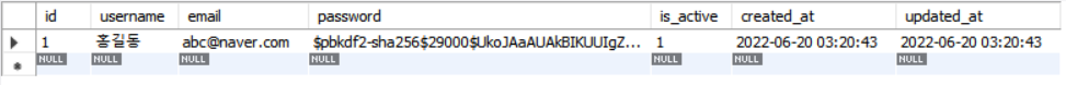테이블에 유저정보가 저장된것을 확인할수있다.