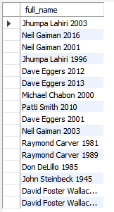 concat 함수를 사용하여 작가이름을 합쳐서 full name으로 가져오자.