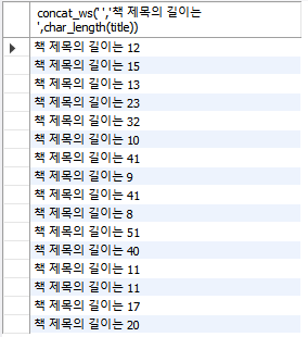 select concat_ws(' ','책 제목의 길이는',char_length(title))