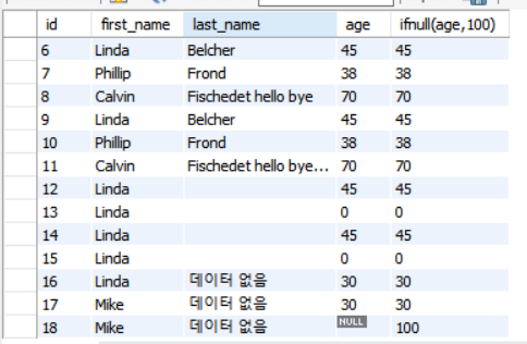 ifnull함수를 사용하여 null 값을 다른값으로 변경할수 있다.